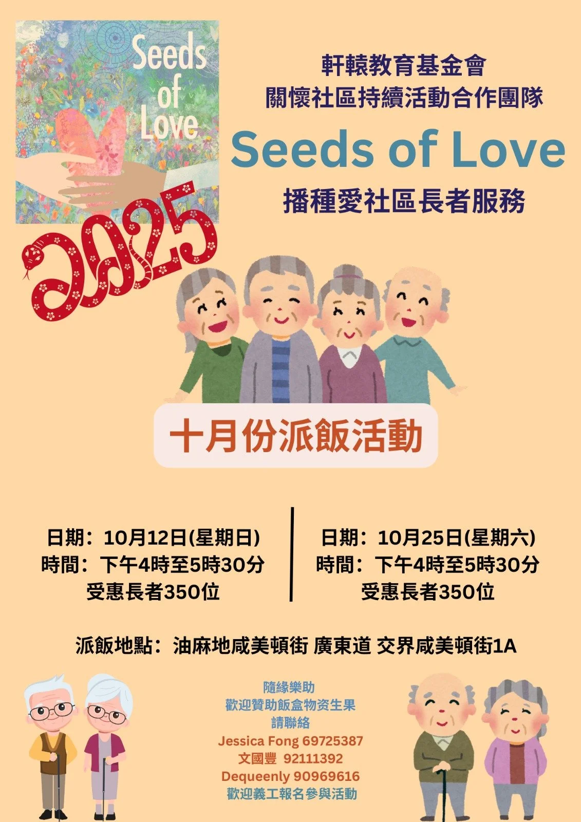 2025年10月12日 - 播種愛・社區長者服務 播種愛 Oct 12 Written By Xuan Yuan 12/10受惠長者340人 派飯活動社區關懷播種愛社區長者服務202510月 Xuan Yuan https://www.xuanyuan.hk
